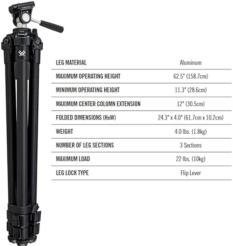 – **22 lb Max Load Capacity:** Designed for versatility, this tripod can support a wide range of equipment, making it a great choice for photographers and outdoor enthusiasts alike.